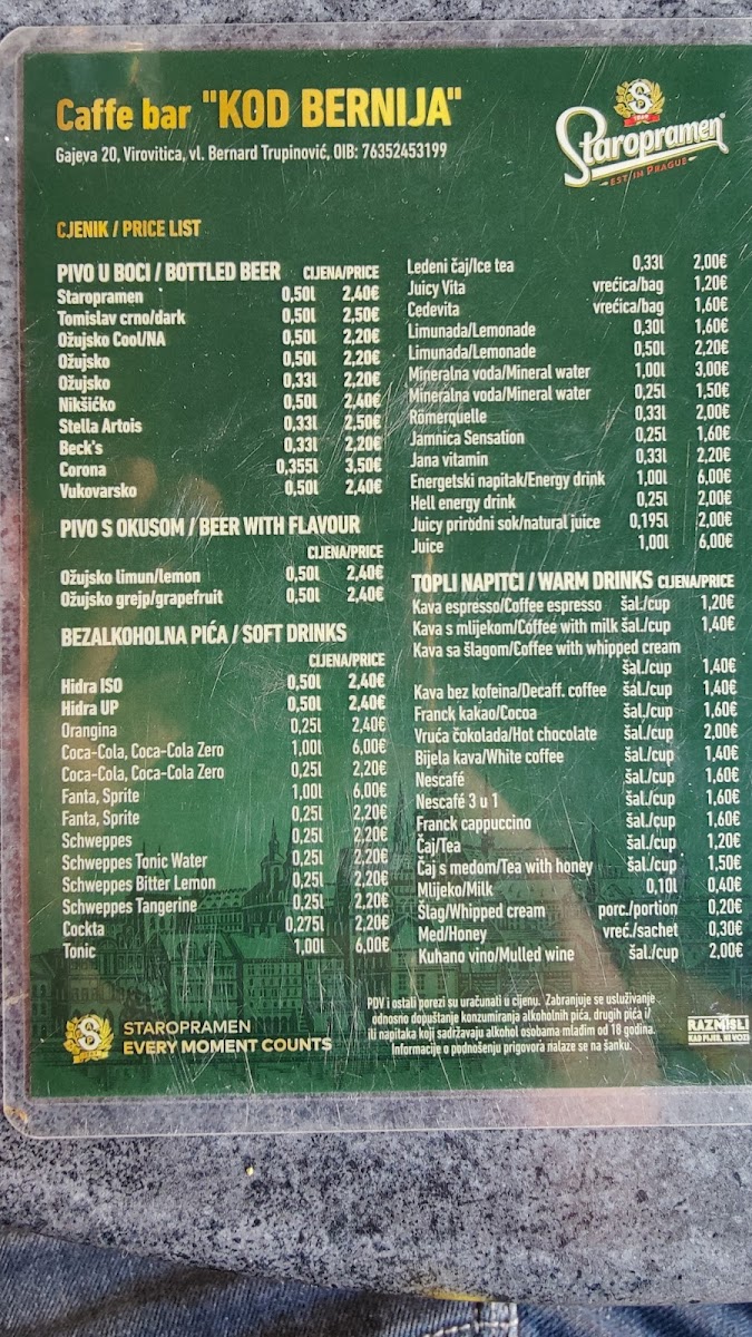 Caffe Bar 'Kod Bernija' Menu